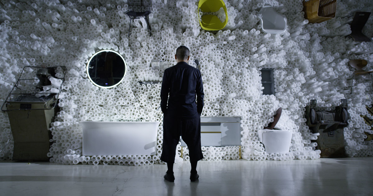FAENZA法恩莎聯(lián)合楊明潔先生以“收藏”為視角,隱秘、自由為基調(diào)共同打造藝術(shù)聯(lián)名空間。衛(wèi)生間本是一個(gè)充滿泡沫的地方,加上現(xiàn)代裝置藝術(shù)美學(xué)意象化的表現(xiàn)形式,大量泡沫條充滿整個(gè)空間,將固定的空間布局沖散,象征著人們的無限幻想。