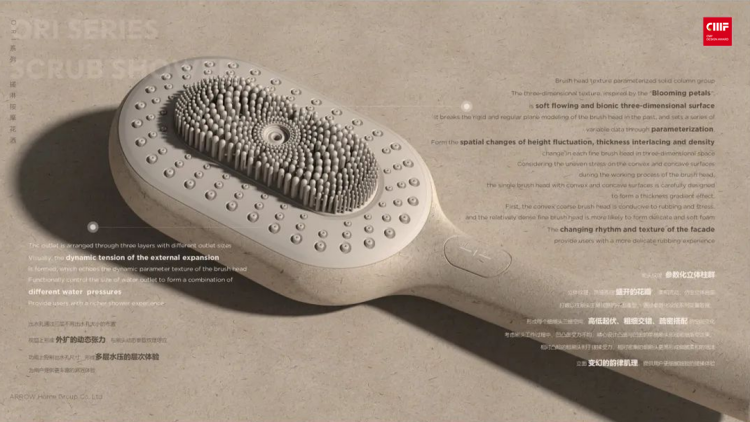值得一提的是,在2022國際CMF設(shè)計(jì)獎(jiǎng)中,ORI系列搓淋按摩花灑榮獲產(chǎn)品類金獎(jiǎng),是8個(gè)產(chǎn)品類金獎(jiǎng)中,唯一一個(gè)家居領(lǐng)域產(chǎn)品。