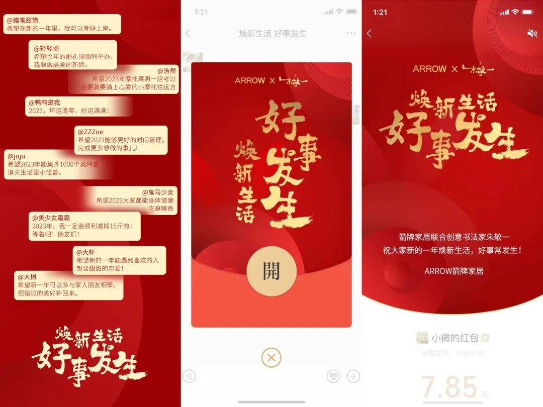 在日益濃烈的新年氛圍與大眾期待中,箭牌家居洞察用戶對(duì)新年新生活的美好期待,釋放出“煥新生活,好事發(fā)生”的營(yíng)銷主張,打造出了一場(chǎng)十分契合大眾社交屬性和心理期待的活動(dòng),將品牌的人文關(guān)懷融入公眾易于感知的CNY營(yíng)銷項(xiàng)目中,也為行業(yè)做出優(yōu)秀示范。